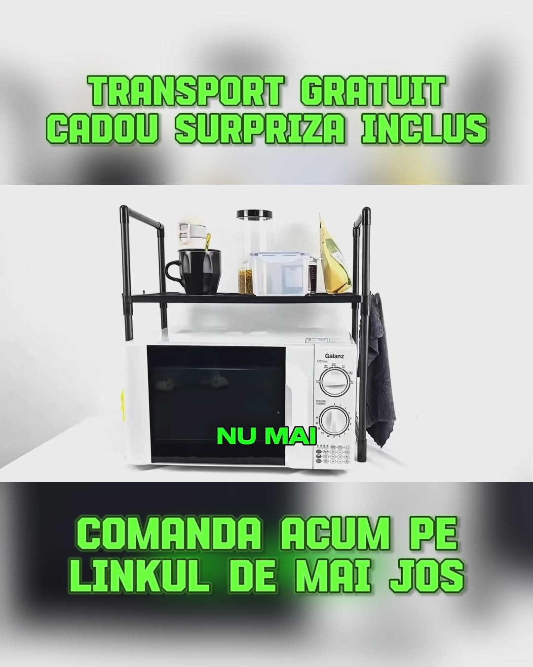 Transformă zona cuptorului cu microunde într-un punct organizat. Raftul elasticizează spațiul vertical, pune condimentele la îndemână și eliberează blatul de lucru pentru gătit fără stres.