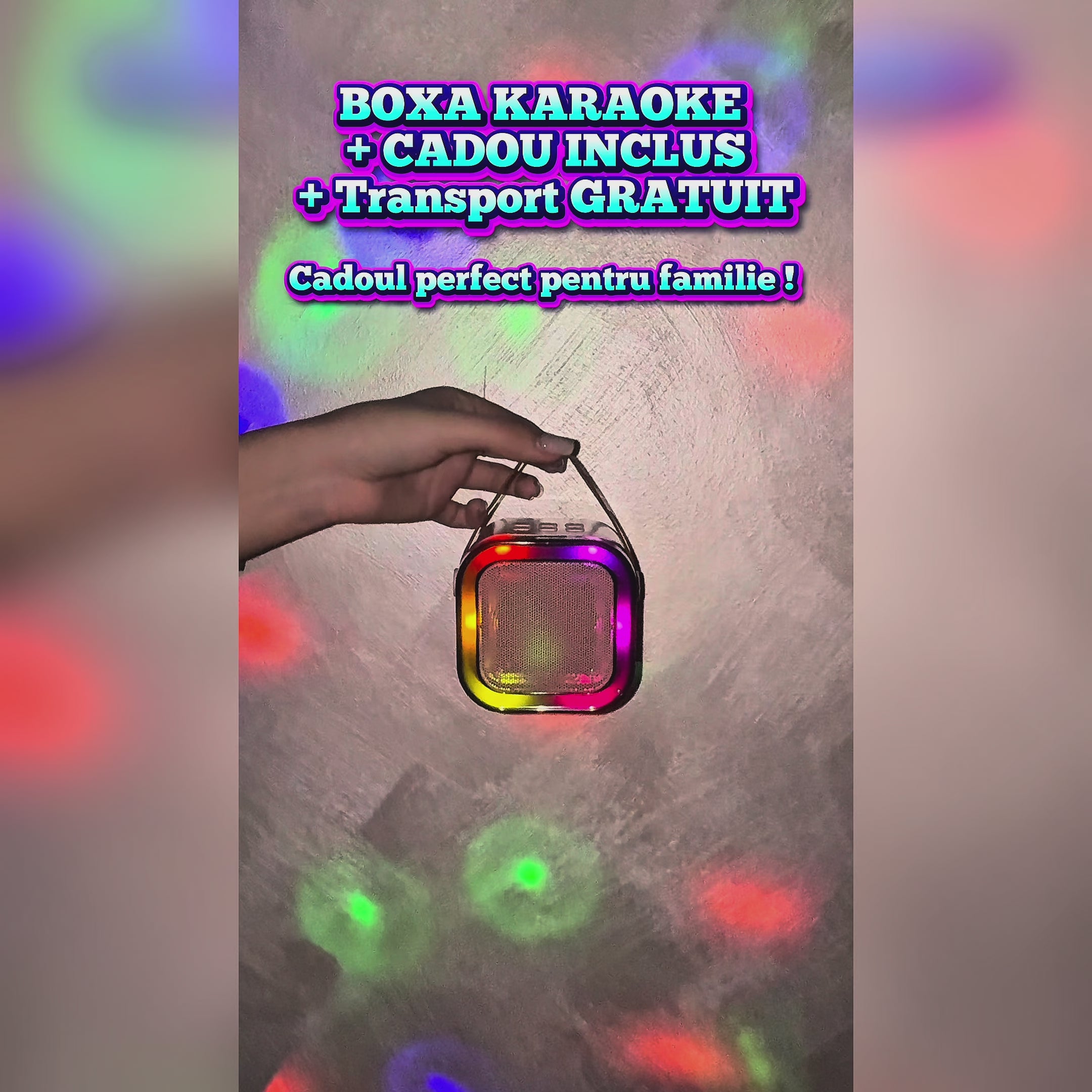 Set Boxa Karaoke cu 2 Microfoane Wireless, Bluetooth + CADOU BEC CU LED MULTICOLOR